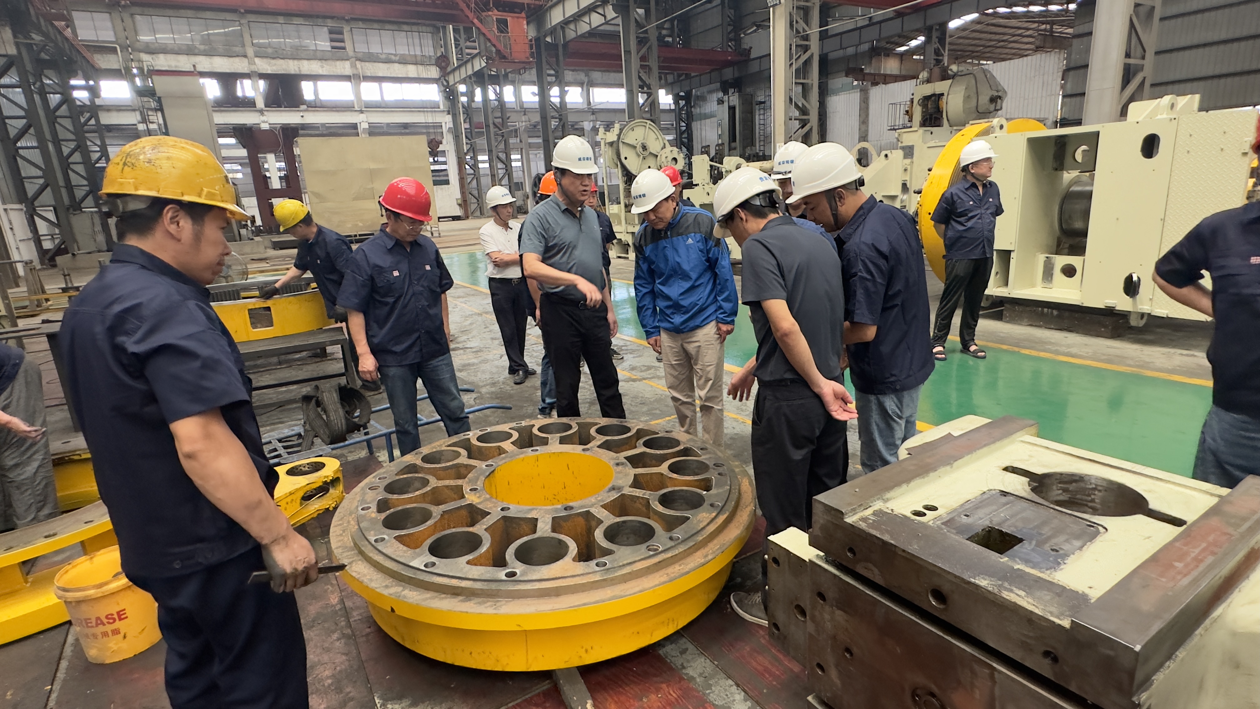 董事長及相關(guān)部門負(fù)責(zé)人陪同梁總一行參觀了我司的生產(chǎn)車間、組裝車間等各環(huán)節(jié)??偨?jīng)理董銘詳細(xì)介紹了我司主打產(chǎn)品熱模鍛的性能及特點,并對客戶提出的疑問進行了專業(yè)解答?,F(xiàn)場的機械鍛打,直觀的刺激了他們的眼球,讓客戶贊嘆不已。豐富的專業(yè)知識和有素的工作能力,也為客戶留下了深刻印象。