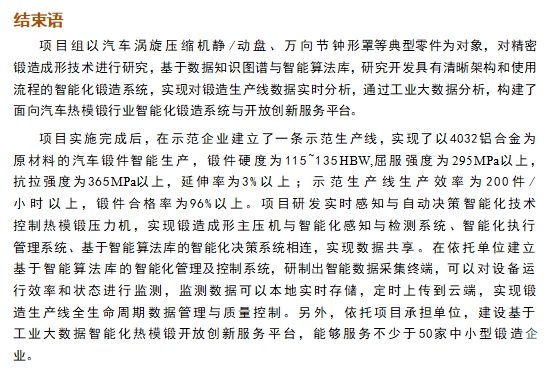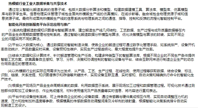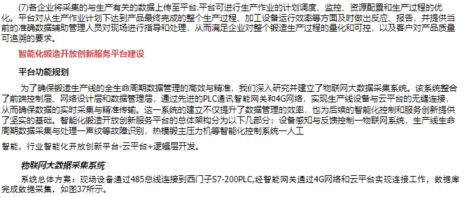 以智能化鍛造生產(chǎn)閉環(huán)線為核心,基于鍛件的工藝、生產(chǎn)過程、在線監(jiān)測數(shù)據(jù)、銷售數(shù)據(jù)和使用過程等,與人工智能生產(chǎn)技術(shù)相融合,開發(fā)一套智能化鍛造服務(wù)平臺。平臺具有鍛件產(chǎn)品質(zhì)量監(jiān)督、智能工藝設(shè)計(jì)、自動(dòng)控制調(diào)節(jié)設(shè)備參數(shù)、自動(dòng)調(diào)節(jié)生產(chǎn)頻率等功能。通過圖36所示熱模鍛數(shù)據(jù)服務(wù)創(chuàng)新服務(wù)平臺顯示系統(tǒng)呈現(xiàn),實(shí)現(xiàn)狀態(tài)感知、實(shí)時(shí)分析、精準(zhǔn)執(zhí)行及自主決策。