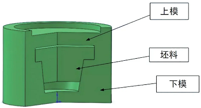經(jīng)過分析選擇如圖28所示的單元成形模型,此模型是一個(gè)正擠壓模型,下模由擠壓筒和擠壓型腔組成。